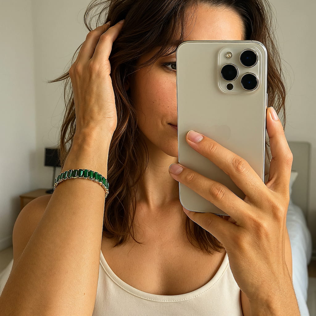 Add the “BOCA” EMERALD BAGUETTE TENNIS BRACELET to your capsule and let its green brilliance anchor your confidence. ✨