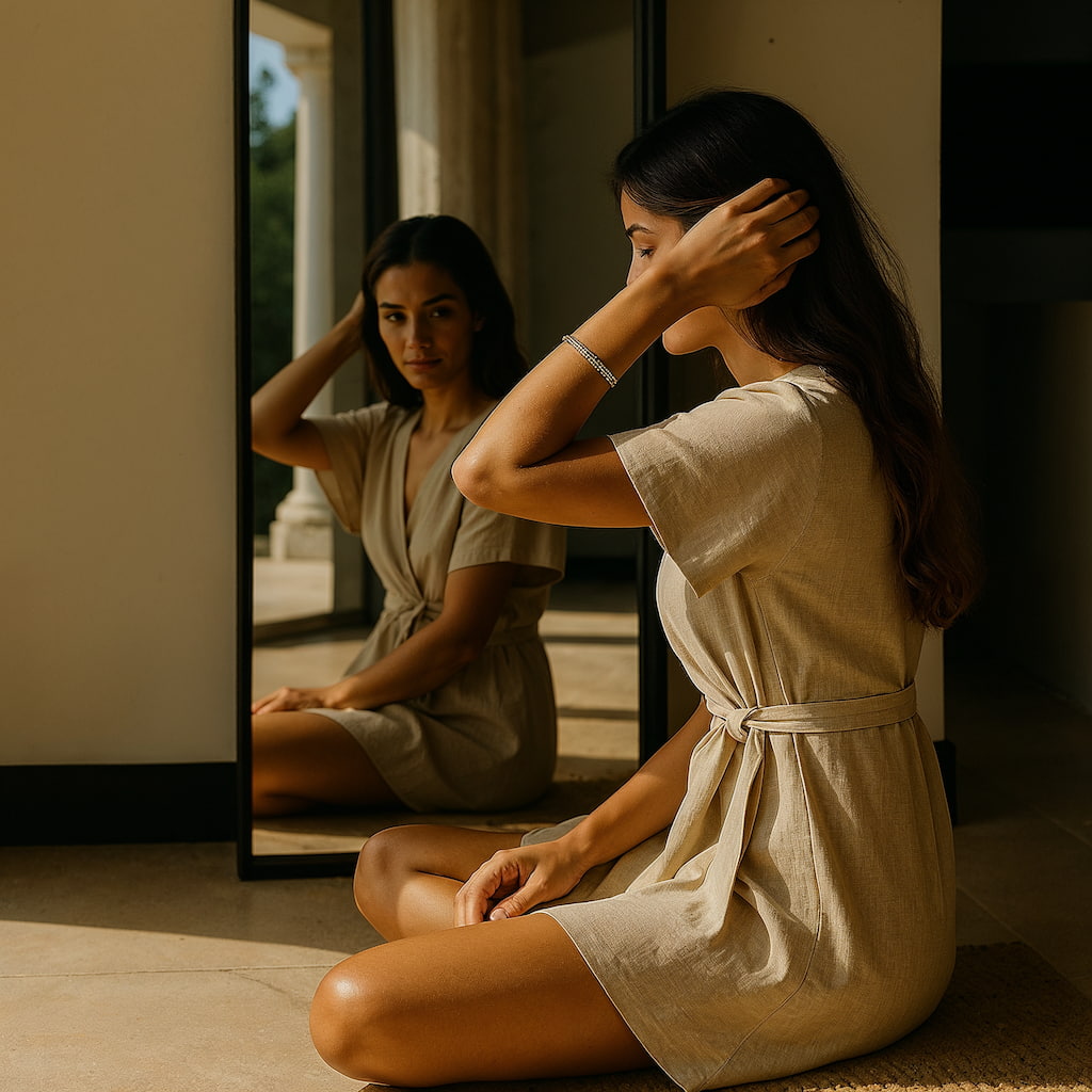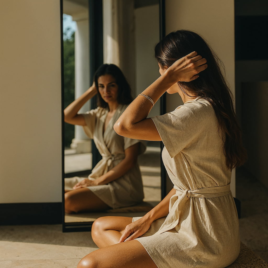 100% waterproof, always. Go ahead and swim, shower, or sweat—your MLMT pieces won't fade, peel, or dull. Just rinse with fresh water afterward and pat dry. Your confidence ritual shouldn't pause for anything. 🏊‍♀️✨