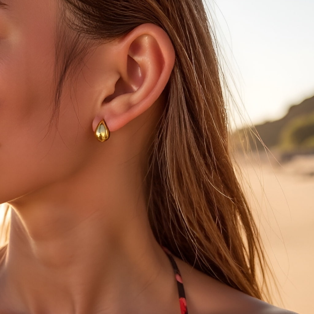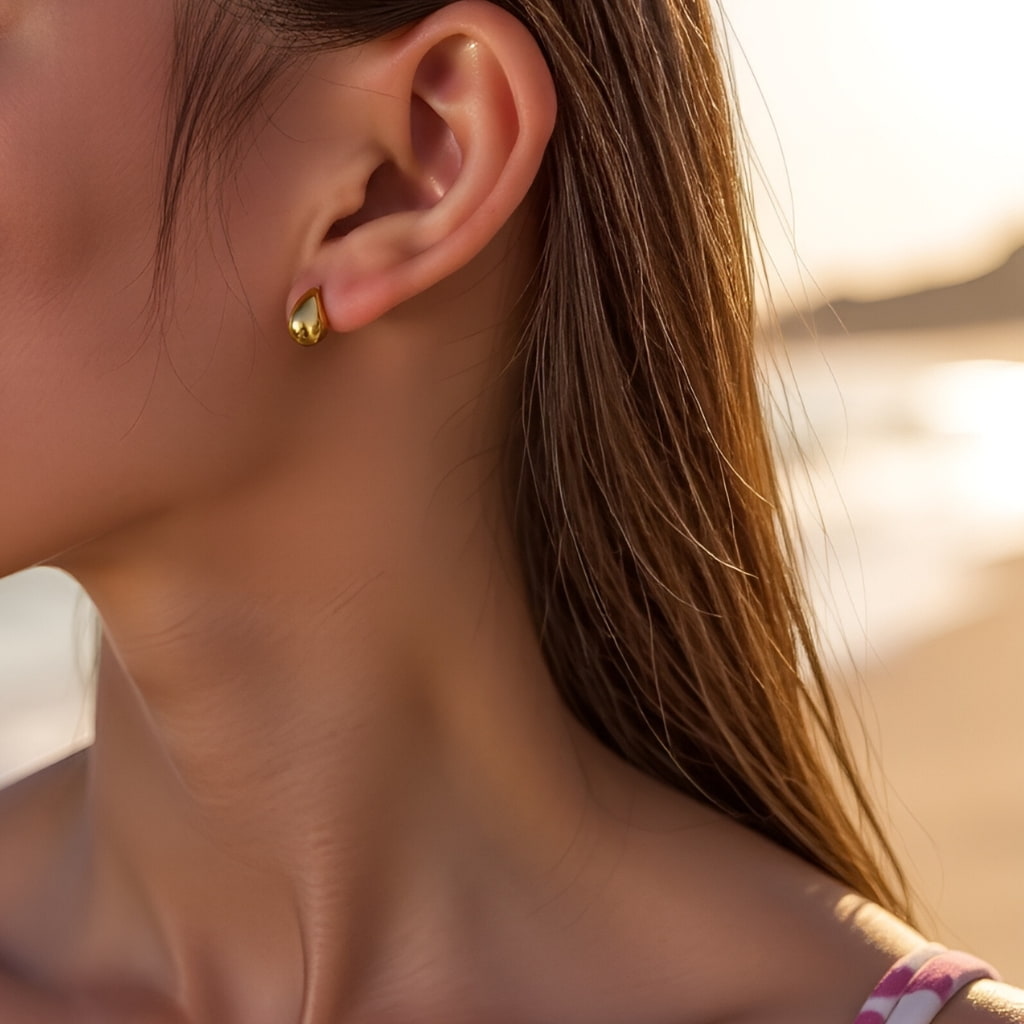 Dive into the serene beauty of the tropics with the PETITE OCEANDROPS earrings. Inspired by the gentle waves of the Indian Ocean, these teardrop-shaped studs embody effortless sophistication and grace.